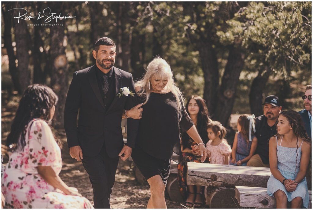 EJ walking his mother down the aisle to her seat…