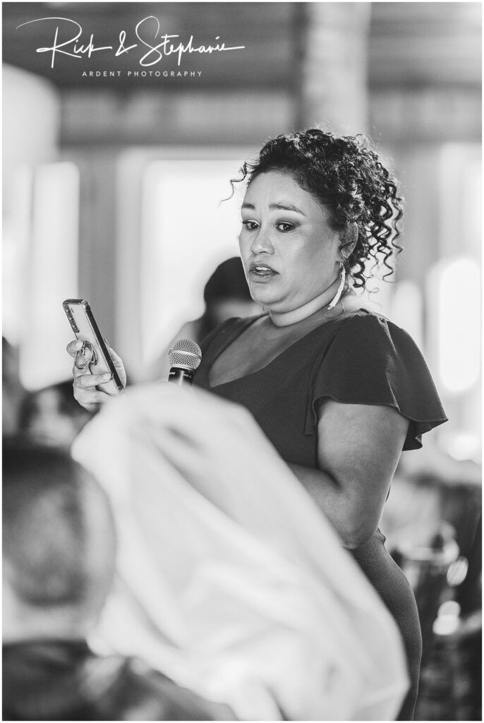 Heartfelt toast from the maid of honor had everyone emotional.