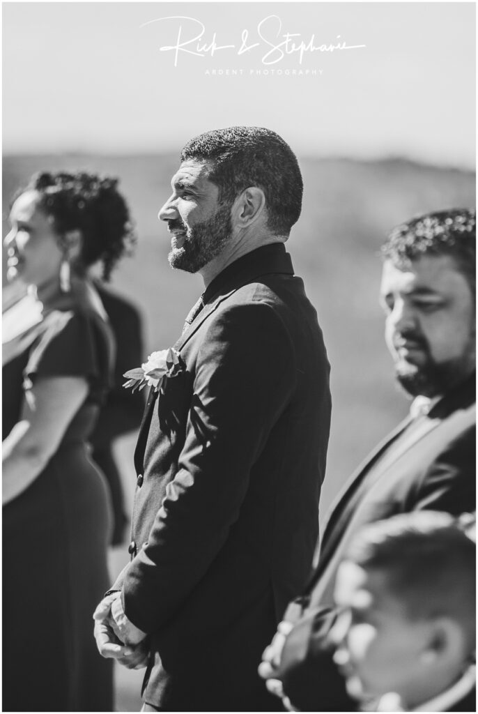 The groom waiting as his forever walks down the aisle to spend the rest of their lives together!